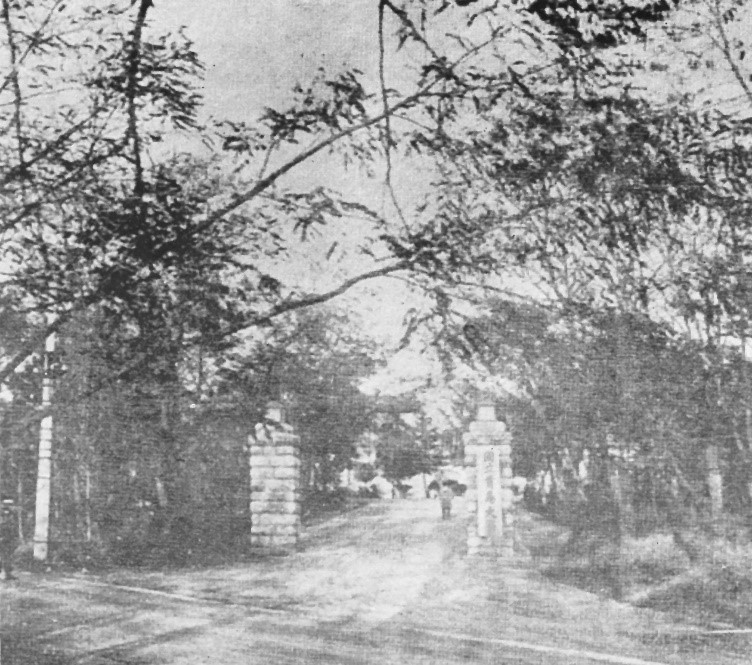 私立青島大學(xué)校門(mén)(校門(mén)正對(duì)的建筑是今天中國(guó)海洋大學(xué)魚(yú)山校區(qū)海洋館)